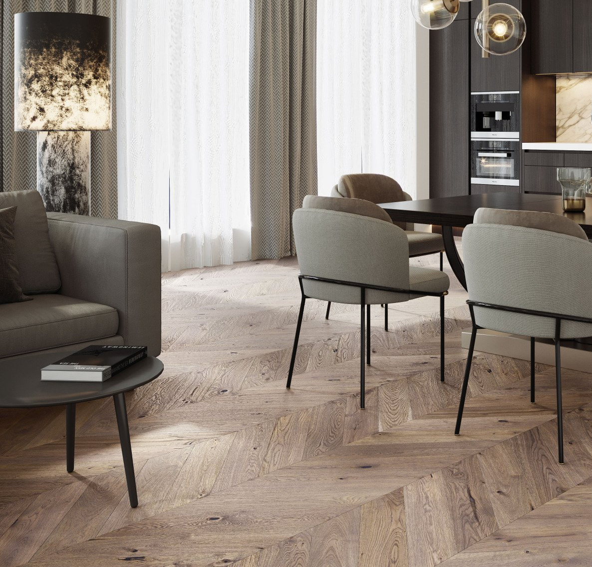 SMOKED OAK CHEVRON BRUSHED MATT LACQUER